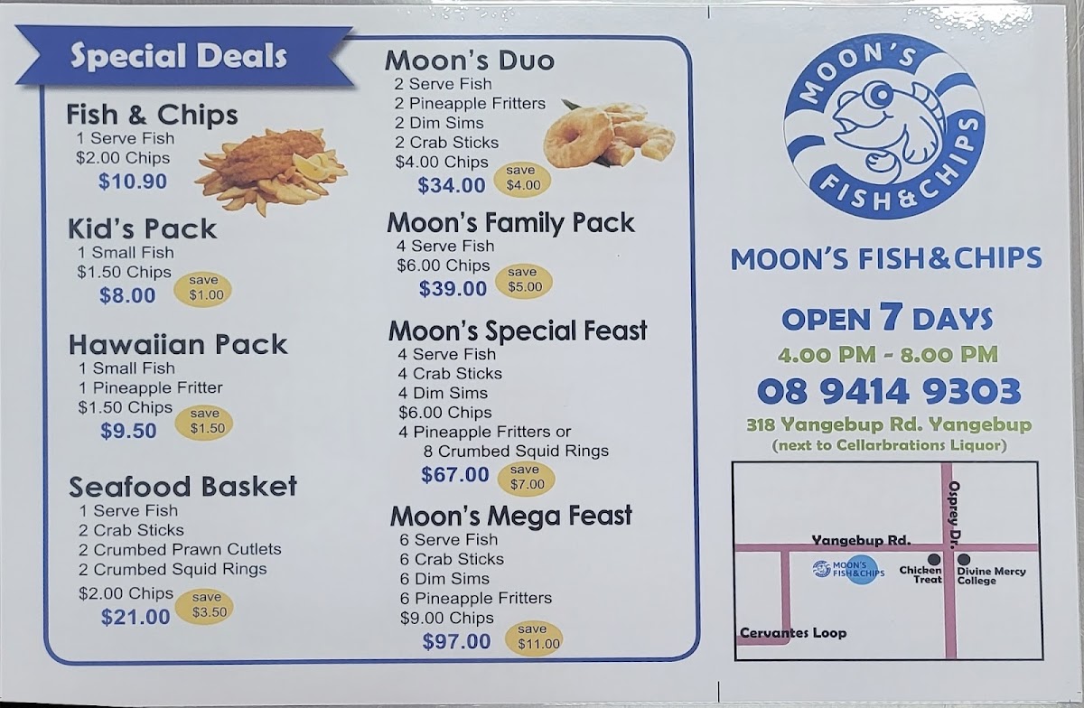 Moon's Fish & Chips Menu